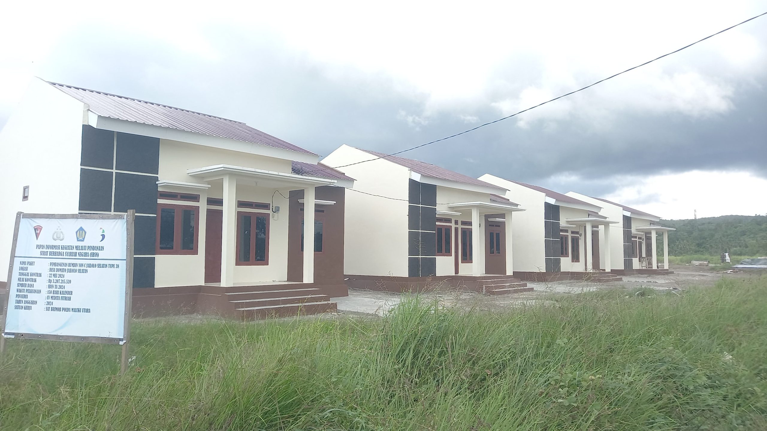 “Perumahan yang dibangun ini berjumlah ada 14 unit, terdiri dari 4 unit rumah type 54, 10 rumah type 38 dan 1 unit barak type 450, yang dibangun diatas lahan kurang lebih 1 hektare dari total keseluruhan lahan 5,5 hektare,” ungkapnya.