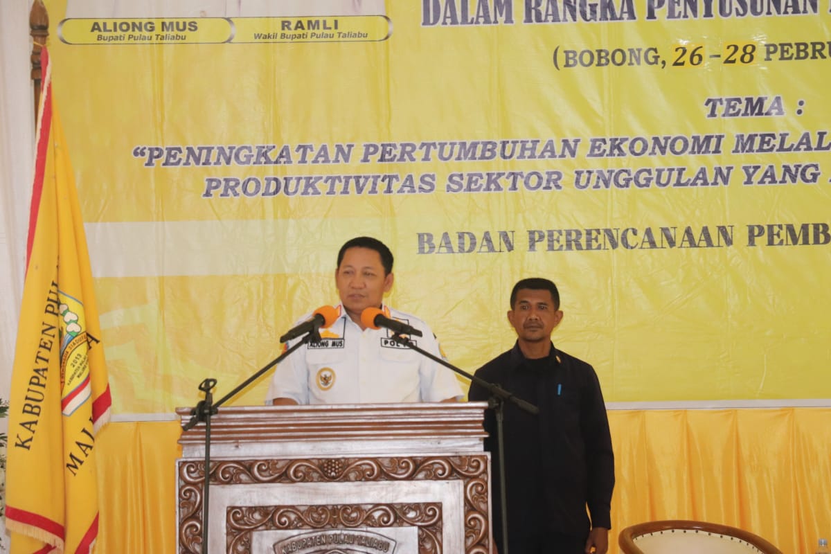 Sofifipost, Taliabu | Bupati Pulau Taliabu, H. Aliong Mus membuka Forum Perangkat Daerah dan Musyawarah Perencanaan Pembangunan (Musrenbang) dalam rangka penyusunan Rencana Kerja Pemerintah Daerah (RKPD) Tahun 2026, di Aula II Eks Kantor Bupati, Bohong, Selasa (26/2/2025).