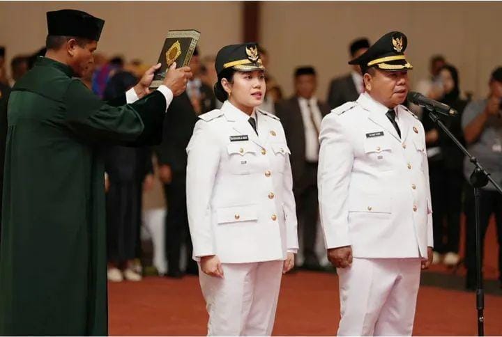 Sofifipost, Taliabu | Pasangan Bupati dan Wakil Bupati Pulau Taliabu, Shalsabila Widya L. Mus dan La Ode Yasir, resmi dilantik Gubernur Maluku Utara Sherly Tjoanda, bertempat di Aula Nuku Kantor Gubernur, Sofifi, Senin (26/05/2025)