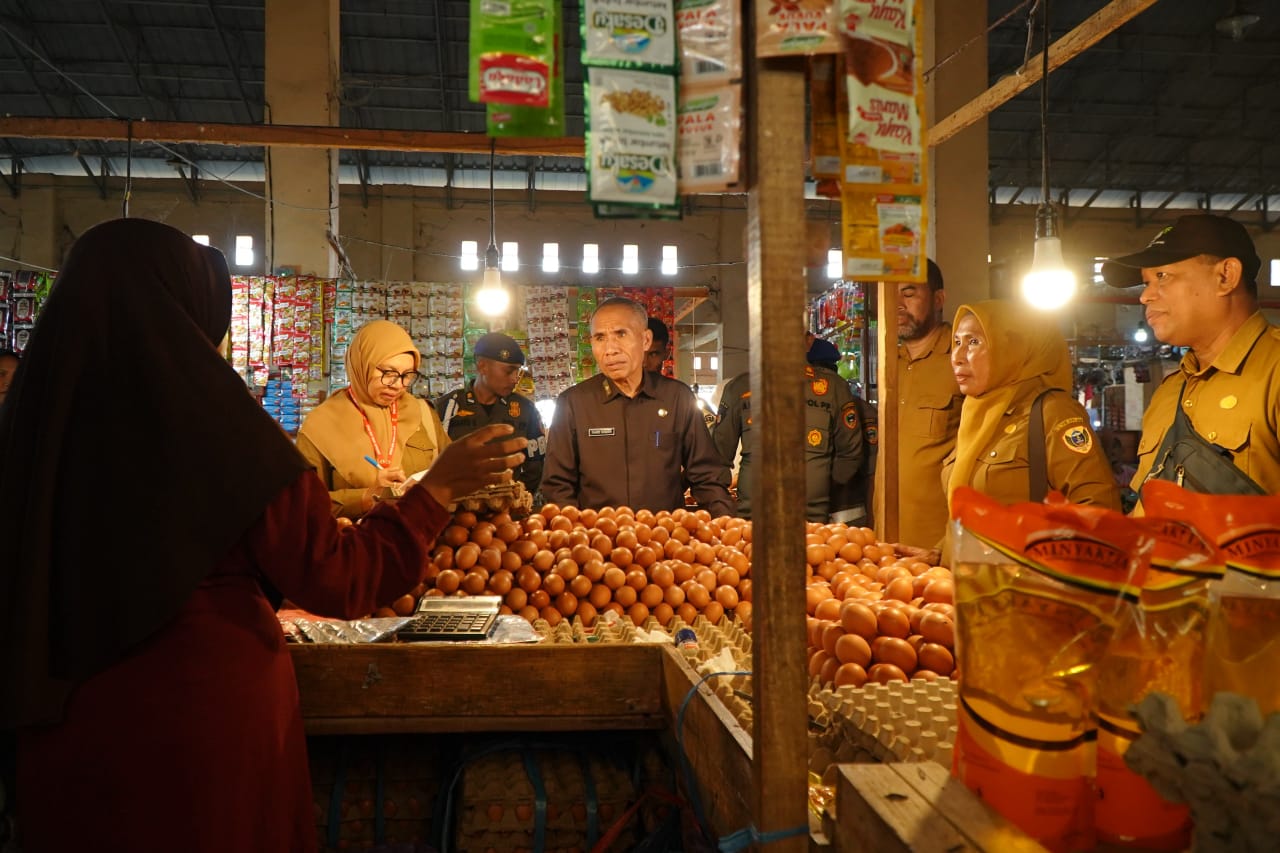 Sofifipost, Tidore | Dalam rangka menghadapi Natal dan Tahun Baru, Tim Pengendalian Inflasi Daerah (TPID) Kota Tidore Kepulauan yang dikoordinir oleh Asisten Sekda Bidang Perekonomian dan Pembangunan Taher Husain melakukan sidak di pasar Gosalaha untuk memastikan ketersediaan stok dan stabilisasi harga, Selasa (16/12/2025).