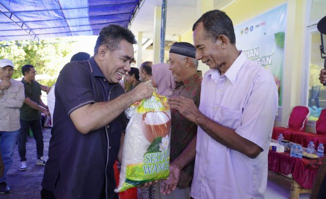 Wawali Tidore Serahkan Pangan Gratis di Oba Tengah