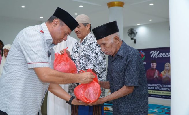Wali Kota Tidore dan Ketua TP PKK Bagikan Ratusan Paket Sembako kepada Warga Mareku